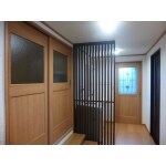 和風真壁の廊下を大壁クロス貼りして明るくなりました。