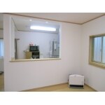 セミオープンだった対面キッチンの吊戸棚、垂れ壁、袖壁を撤去し、オープンキッチンに変更しました。 (その他、ダウンライト取付、コンセント追加等)