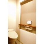 白とベージュでナチュラルで落ち着いたトイレ空間に