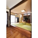 リフォームのポイントは、使いにくかったキッチンを移設し、リビング内に取り込んだこと。さらに元のキッチンがあった場所に浴室や洗面室などを移設。水まわりを集中させることで、使いやすい動線を実現しました。リビングに隣接させ、掘り炬燵を設けた小上がりの和室はお孫さんを寝かせるためのスペースにもなっています。間取りを構成する際に、収納も各所に設置し、すっきり暮らせるよう配慮。お客様のお住まいが平成12年の新耐震基準をクリアしているので、平成26年の新・新耐震基準をクリアするため、一部金物の補強で対応しました。