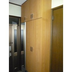 玄関収納の容量が小さいため、天井まである容量の大きな玄関収納にリフォームしました。