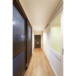 すっきりとグレイッシュで都会的な印象の廊下