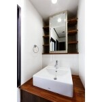 使い勝手のよいシンプルなデザインの洗面化粧台