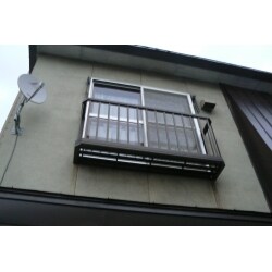 窓手摺・物干し金具共にかなり劣化が進んでいましたので、撤去 は、外壁に負担の掛からない様慎重に施工しました。 窓手摺は、アルミ製で、奥行きも50センチと花等飾ることが 出来るように考えました。物干し金具は、角度が変えられて 折り畳みが出来る物を取り付けました。