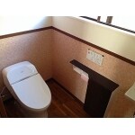 和風の立派なお宅のトイレを使い勝手の良いスッキリしたトイレに改修しました。 採用したトイレは「TOTO GG」、コンパクトタンクでデザインも良いですね。また、床・壁がタイルだったのを暖か味のある壁紙やクッションフロアに変更し、清掃性も上がりました。トイレドアは押し開きでしたが、アウトセット片引戸に変更しました。これまで押し開きのため置きづらかったトイレ用スリッパもストレスフリーで気兼ねなく置けるようになりました。 一般住宅のトイレよりも広かったこともあり、タイル壁の解体から木下地工事、給排水配管、内装工事まで行って約7日間かかりました。 多くのお客様が来られるお宅のトイレでしたので、綺麗に快適に使えるようになりご満足いただけております。