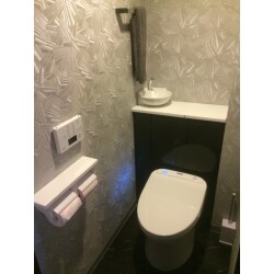 トイレの収納を増やしたいというご要望でしたので、TOTOレストパルをご提案させていただきました。 収納棚付きの使い勝手の良いトイレで収納量が増えました。濃い色目の扉を基調とした、高級感のある空間に仕上がりました。