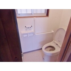 今回は和式トイレから洋式トイレに変更する工事のご依頼でした。 トイレにも手すりが必要ということでしたので洋式に替え、 なおかつ階段下の収納部までトイレスペース広げ、ゆとりのある空間にしました。