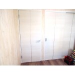 お客様にはっきりとしたイメージがあった為、規定品ではなく半オーダータイプの建具をご用意させて頂きました。間取りを考え収納スペースとドアに分けてより使いやすさを追求しました。
