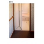 ユニットバスへ変更に伴い、折戸へ変更、かつ段差を無くしました。またドアの開口が広がりました。