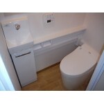 タンクがなくお掃除しやすいタンクレストイレをおすすめしました。また、タンクレストイレだと手洗いがなくなるので、併せて手洗いカウンターをご提案しました。