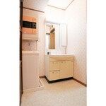 廊下に置いた洗面台スペースを洗面脱衣室に