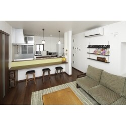 お子様やご主人と沢山会話ができるように対面キッチンにして、 カウンターも設置しました。 明るいご家族なので、これでより一層賑やかになりますね。