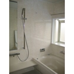 天井も床も柄合わせの難しいものを選んだので心配しました。けれども、どこが切れ目か、目をこらして探してもわかりません。きれいな仕事をしていただきました。毎日お風呂がたのしみです。姉もお風呂のリフォームを考えていて、うちのお風呂を見て感心していました。