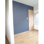 壁紙の一部をダークブルーのストライプで落ち着いた空間に仕上げました。窓の多いお部屋でしたので、断熱のためにインナーサッシを取り付けて、夏も冬も快適にお過ごしいただけるように致しました。 また、ウォークインクローゼットは使い勝手を重視し、あえて扉を付けずに施工致しました。