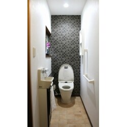奥様のご実家にご家族でお帰りになるにあたって、介助が必要なおばあさまも、学生のお孫様方も使いやすいトイレをご提案させていただきました。