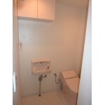 元々の事務所トイレの形状を利用して、広々ゆったりとしたトイレにしました。トイレ内の空きスペースを無駄にしないよう、手洗い器設置のご提案をさせて頂きました。