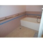 既存の浴槽の巾を10センチ広げて、床と腰壁をタイル。壁、天井