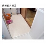 入口にアコーディオンカーテンを利用していたため、引き戸への変更をご提案。また洗濯機が新しくなってから上手く入らず、隙間があったため洗面化粧台を取り替えることでデッドスペースの解消をしました。