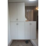 玄関ドアを取替えると同時に土間とポーチのタイルを貼替 玄関収納をスペースいっぱい使い造作しました。