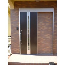 玄関の中央部に柱が入っており通常の引き戸が入らないので、YKKのアウトセット玄関引き戸コンコードを提案させて頂きました。