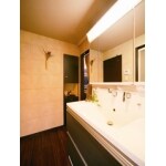 システムバスの一部と浴槽に茶系を選択することで、和のテイストにあわせた空間になりました。浴槽内に手すりをつけたので、出入りや掃除がしやすくなりました。