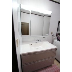 - 洗面化粧台のリフォーム サイズを大きくして使いやすく