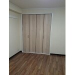 クローゼット折戸にはLIXILLウッディーライン(ラテオーク)を採用しました。 元々グレー色だった、出入口扉やサッシ額縁等を、白に塗替えました。