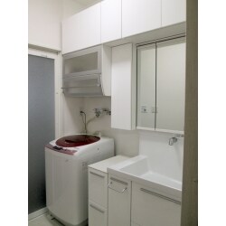 TOTOオクターブ(セットするキャビネット等も指定)で見積をお願いしました。 風呂場から入るサウナが洗面室に張り出していましたが、サウナを撤去して2階の洗濯機を洗面室内に設置したいと希望していました。