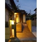 駐車場、門柱、アプローチ、ポーチ、庭(芝生)、ウッドデッキ、ルーフテラスなどのエクステリアをトータルリフォームしました。 スペースがあったので末永く快適にお住まいになれるようにバリアフリー仕様のエクステリアをご提案させていただきました。 機能性とデザイン性を兼ね備えた照明にこだわりましたので器具の配置を職方と何度も打ち合わせを重ねましてカッコ良く仕上げることができました。 【管理番号001-1205-152】
