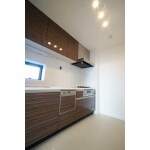 オールスライド収納、人大カウンター、掃除が簡単なレンジフード、食器洗い乾燥機、ガラストップコンロ、浄水器内蔵シャワー水栓、磁石がくっ付くキッチンパネルなどキッチンに人気のオプションをフル装備しました。 価格はキッチンセットとパネルの金額で内装を除きます。