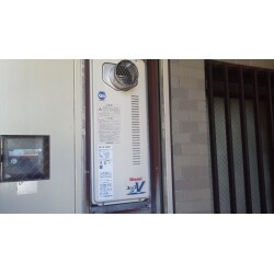 スリムタイプの16号追い焚き給湯器です。PS扉内設置の丸排気タイプの給湯器です。
