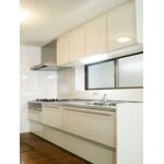 クリナップ「ラクエラ」を設置しました。 扉カラーは光沢のあるアロマホワイト柄をお選びいただき、高級感がある明るいキッチンになりました。 今までお使いだったレンジフードはお掃除がしにくいのがお悩みでしたので、お手入れが簡単な「スマートフード」をご提案しました。スマートフードと吊り戸棚の高さを揃えることで、すっきりとした印象になりました。