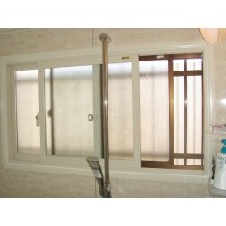 バスルームにある大きめの窓から入る冷気で、寒さを感じるバスルームでしたが、リクシル製 インプラス複層ガラスを取り付けることで、断熱効果があり、結露を防ぎ、防音効果もあがります。住宅エコポイントの対象となる工事で、浴室工事に合わせてご提案しました。窓の工事は短時間で終わります。