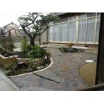 お庭の通り道に石を埋め込んで、前よりも広々として、落ち着いた雰囲気になりました。