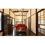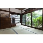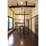 ・「60年前の木製建具を利用したい!」これが全ての始まりでした。存在感のある、昭和の建具にあったセレクト。床材、壁材、照明、インテリア。アンティークショップで購入されたという簾戸からは庭の木々が見えます。南北に風が通り抜け快適な住まい、夏でもエアコンをできるだけ使わないように通風を考慮した計画です。 ・新しいものを新しく見せないこだわり。御夫婦は小民家カフェやアンティークショップを巡り、イメージ作りをしました。 ・工事が始まり平屋部分の天井を落としたところ現れた丸太梁。この現し天井がこの家一番のポイントになったと大変喜ばれています。