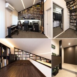 今までに何度かリフォームを繰り返してきて、水廻りやLDKは快適になっているが、物置と書斎に使っている6帖2部屋が使い難く汚く見えてしまった。趣味で習っているベースや大好きな音楽を近所迷惑を考えてヘッドホンで演奏したり聴いたりしていた。また、CDだけでなく本も多く持っているが収納スペースがなくダンボールに詰まっている状態だったのでいつでも自分の好きな物を好きなときに楽しめるような空間がほしかった。