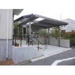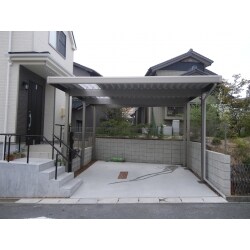 変型(台形)の駐車場の為、通常のカーポートでは形に添って斜めカットが不可能なため、どんな形でも対応できる折半ガレージをおススメしました。