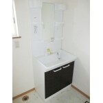脱衣室の床がダメになっていた事もあり、クッションフロアの張り替えと洗面台を新しくしました。 洗面台はTOTOの商品で、シックな感じになる色を選びました。