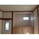 半間の収納だけありました。 横のスペースを前に出して1間半の収納にしました。 大きなL型の収納にしました。 左側は2段にして布団も入るように。 右側にはパイプを付けて吊るせるように。 収納が充実してお客様も喜んでおります。
