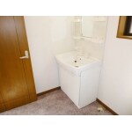 洗面台を交換するので、一緒にクロスの張り替えも行いました。 洗面台を外してクッションフロアを張ることが出来たので、仕上がりも綺麗に出来ました。