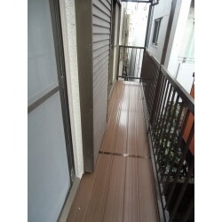 利用出来る部分はそのまま利用し、テラス屋根やデッキ材を交換して見栄え良くしました。壊れていた雨樋や一部腐食していた根太も補強して安心して利用できるベランダになりました。