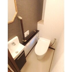 手洗い器を別途設ける際に、新しく給排水管を設置するのは費用も時間もかかります。既存の給排水管から分岐して新しく手洗い器が設置できる、TOTOのワンデーリモデルを施工させて頂きました。タンクレスなので、手洗い器、カウンターが付いても狭さは感じません。【工期 2日 工事費約55万円 内装・手すり工事含む】