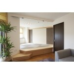 リビング隣にある洋室部分を解体してLDKと一続きの空間にし、角度をつけてゾーニングした和室スペースを設けることでLDKを広く感じさせるよう提案。和室スペースは小上がりにし、床下部分を収納スペースとして活用できるように造作しました。