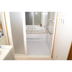 脱衣場に洗面所暖房機を設置し暖かい脱衣場を作りました。浴槽を広くし、お孫さんと入る際にもゆっくり入れるワイド浴槽にしました。