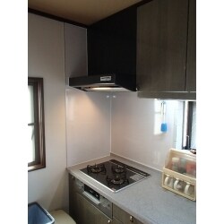 水廻り、特にキッチンは年数が経つと、どうしても汚れが目立って気になります。今回のお客様もリフォームでお悩みを解消されました。キッチンの壁と天井のクロスの貼り替え、、ガスコンロとレンジフードの交換、ブラインドと照明の交換をされました。また、キッチンのタイル壁部分をお手入れしやすいキッチンパネルへとリフォームされました。