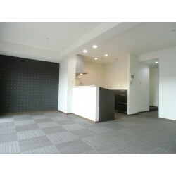 After1 垂れ壁、袖壁も撤去し、明るく開放されたオープンキッチンになりました。クロスとタイルカーペットで雰囲気ががらりと変わりました。