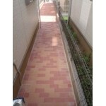お客様よりご要望いただきました際、工期に余裕がなかったのですが、現況の土の長いアプローチの改善をご希望でしたので、インターロッキングブロック敷き工事にあたり、梅雨入り前までに施工させていただきました。