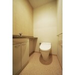 手洗い器のあるスッキリとしたデザインのトイレへ