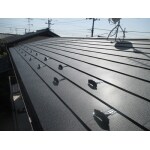 施工前です。 以前、屋根塗装をしたそうですが、その際に縁切りという処理やタスペーサーの使用といった雨漏り対策がされていませんでした。 また、屋根の勾配が少ないのも雨漏りの要因の一部でした。