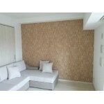 エコカラットの端部の目地の入れ方にも配慮し、施工させていただきました。 穏やかな波のような表情が優雅さをプラスした、デザインのエコカラットタイル